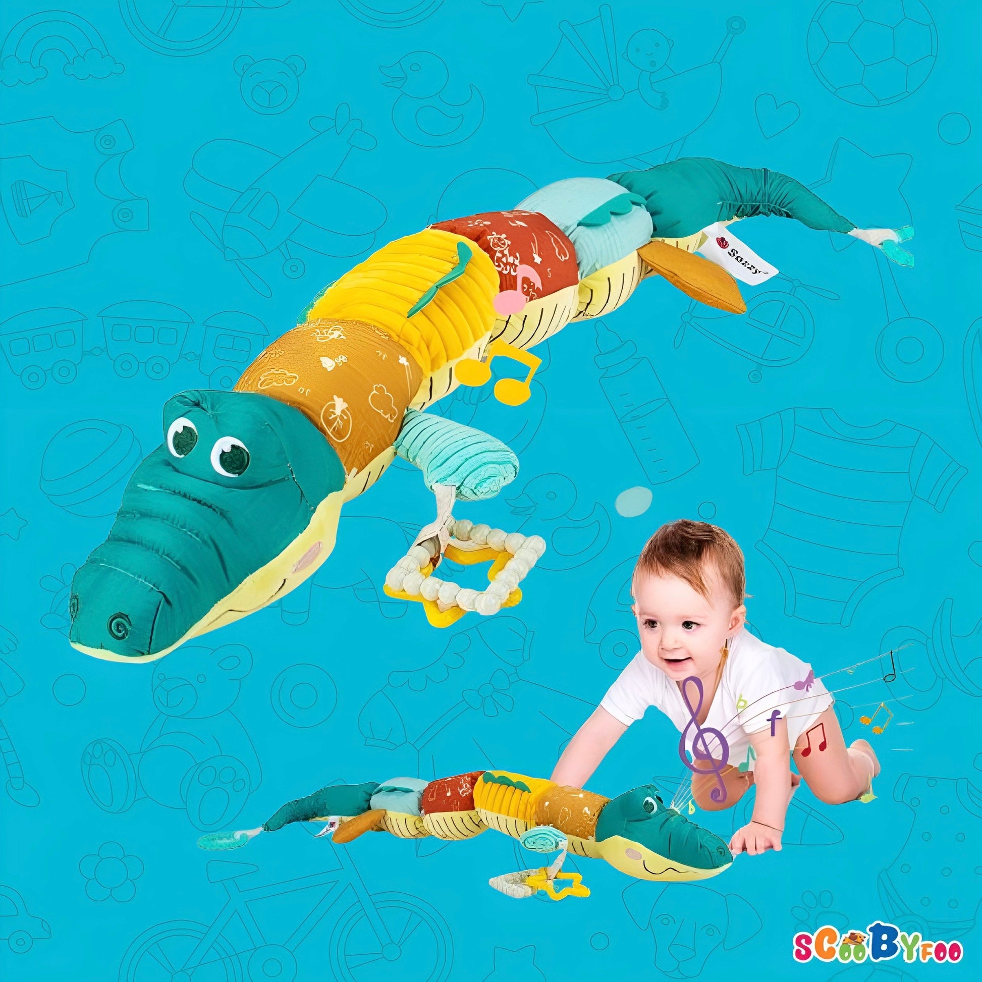 - 🎈【4 IN 1 Crocodile Baby Toys】: Sumobaby long crocodile toy not only enhances its beautiful crocodile shape but also combines the fun of teether toys, rattle toys, music toys, and animal plush toys into one toy. It is one of the babies' favorite companions.